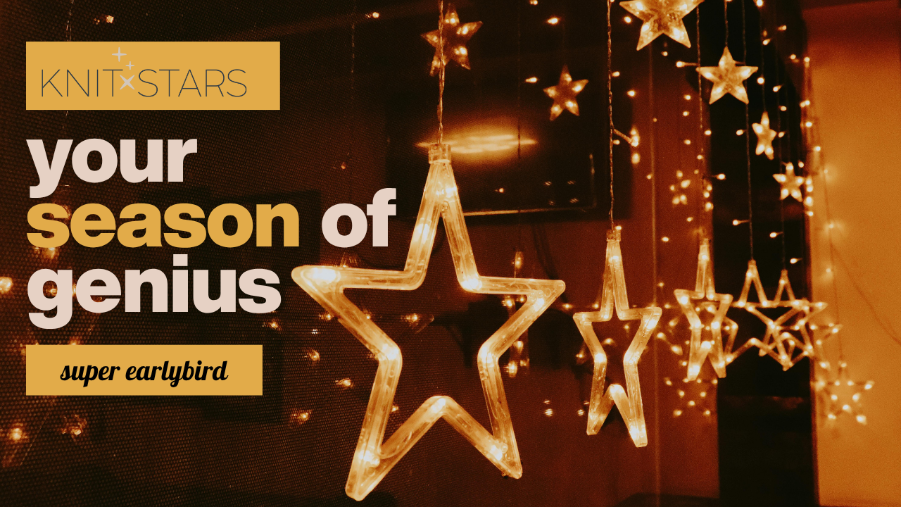 SuperEarlybird signups are now open for Knit Stars: Your Season of Genius. Click here to save your spot at the lowest price, and get the Earlybird experience as a bonus.