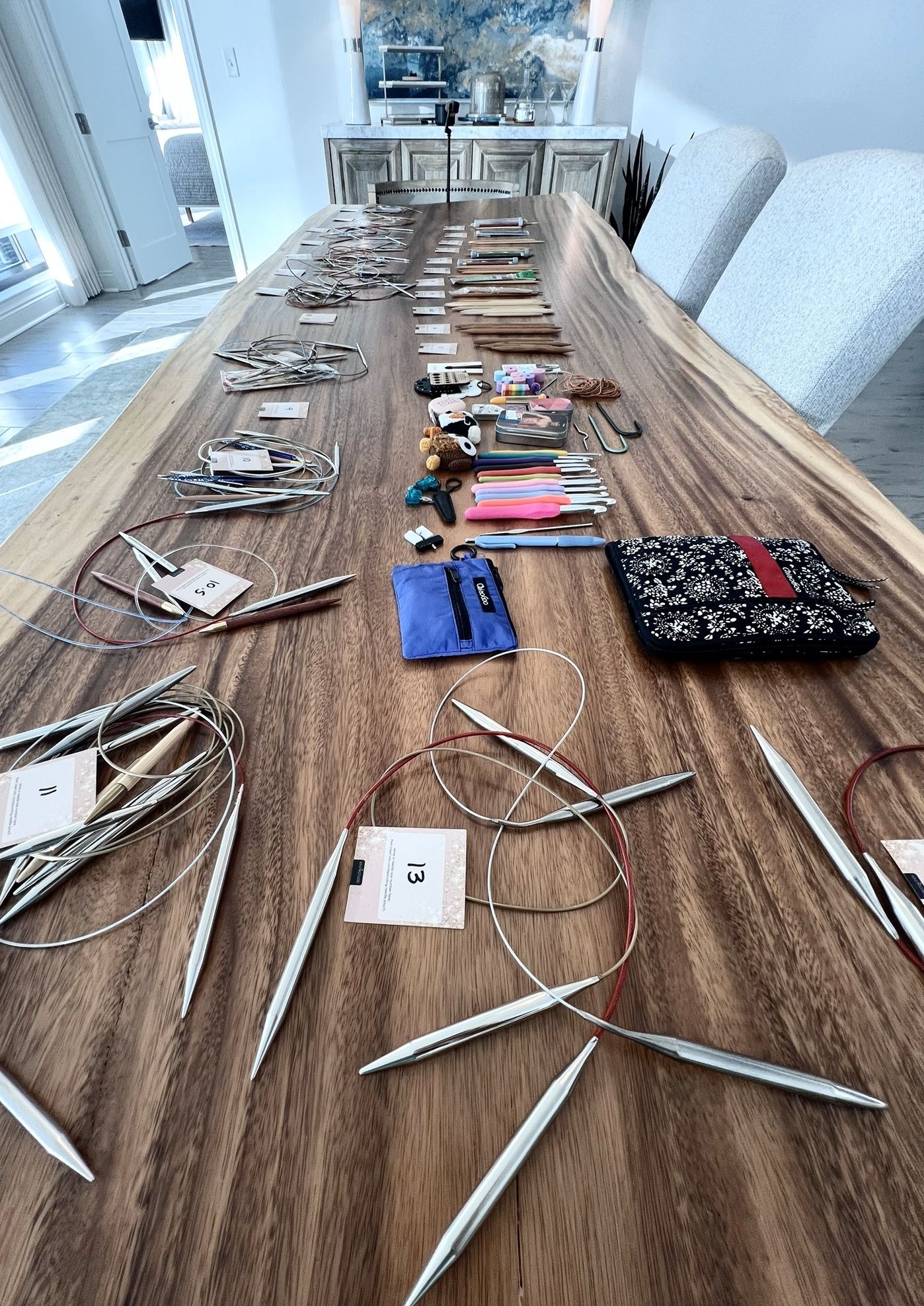 They were spread all over the place, in project bags and cabinets and drawers. I could never find my size 7s so I kept buying more. So when I finally laid everything out and did inventory, I had about 20 pair of size 7 needles. 🙈