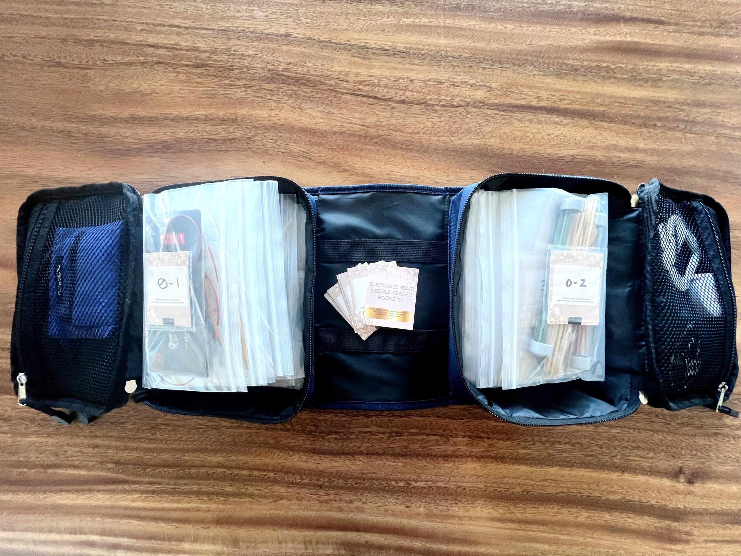 So I finally just made the solution. Our Knit Stars Needle Keeper holds it all – circulars, double points, interchangeables, hooks, notions. All in one portable, elegant carrier.