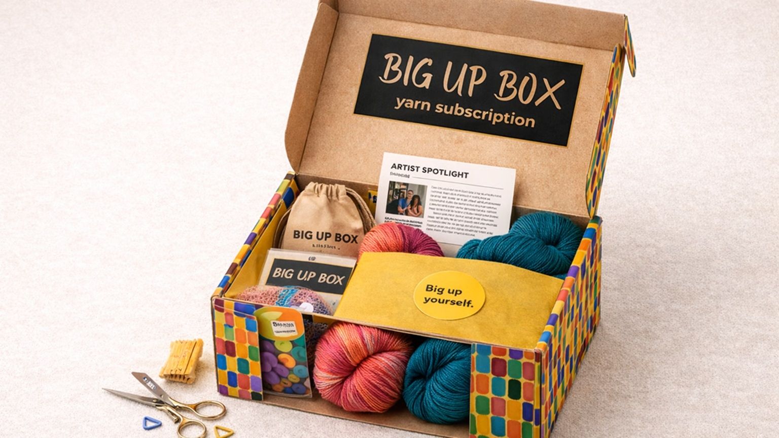 “The yarns, patterns, and extras in each box will be from phenomenal artists you might have never heard of, but that are just as deserving of being featured. And then phase two may be a yarn truck where I can BIG UP and give props to the talented people who need to be seen.”