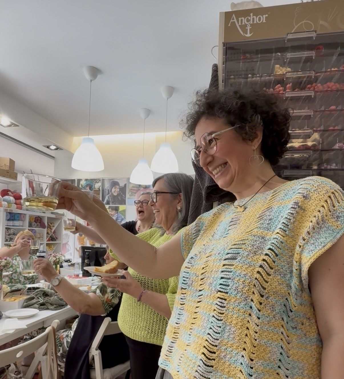 …and gathering in the Lisbon yarn shop where Filipa’s friends brought homemade goodies and raised a toast to the filming of her Knit Stars Masterclass.