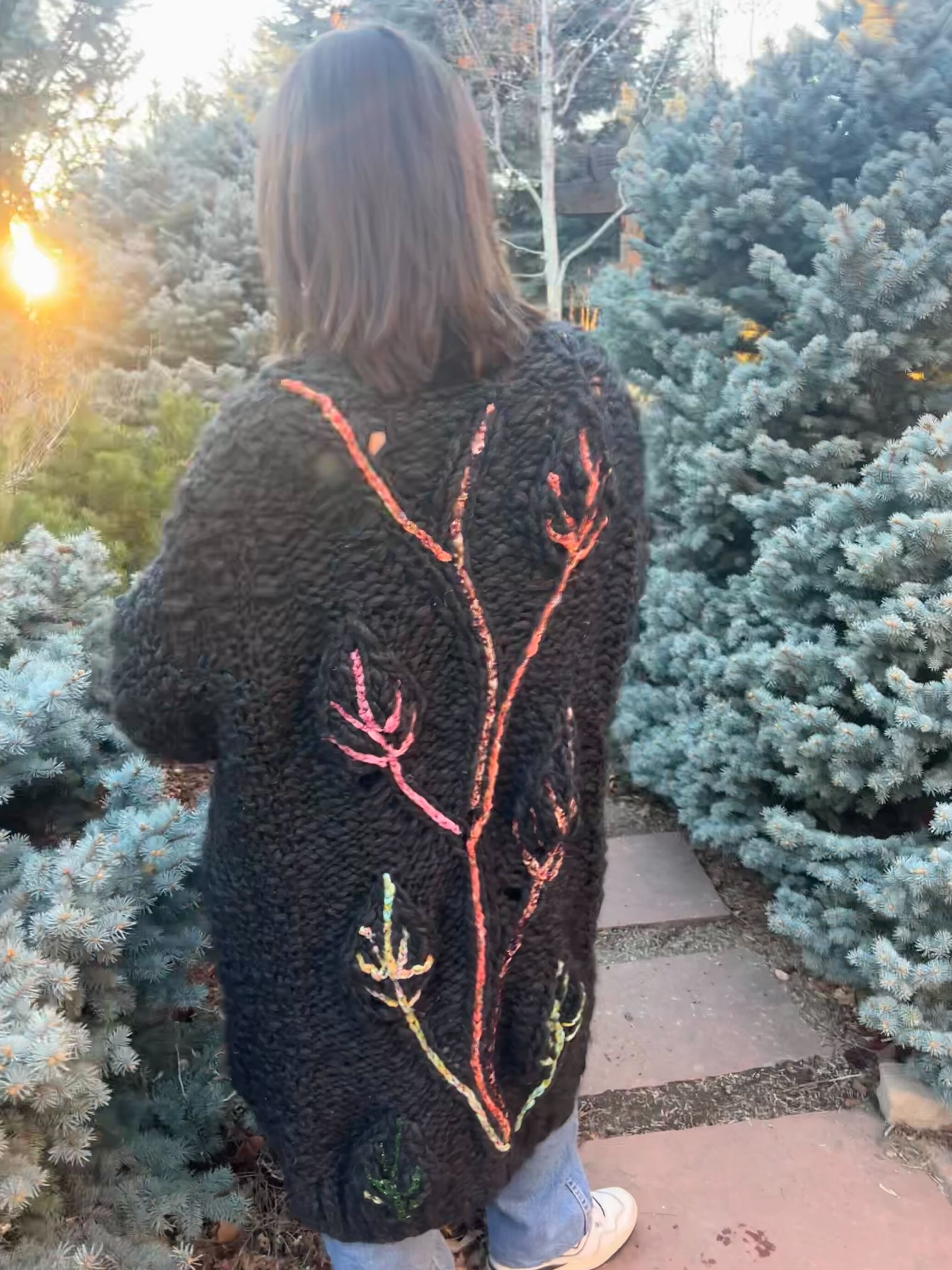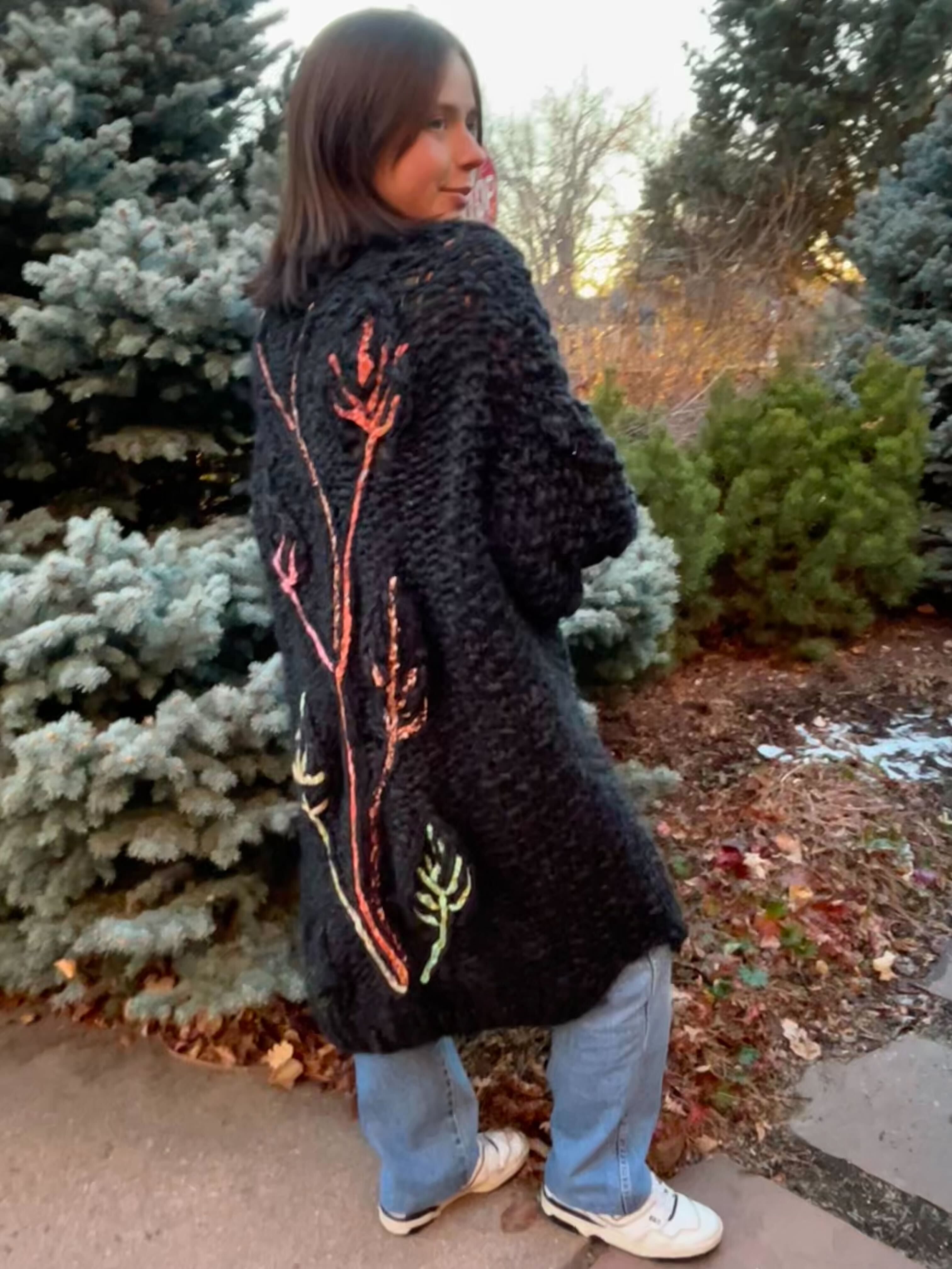You can get a kit to make your own Wandering Vine Cardigan (long version) here.